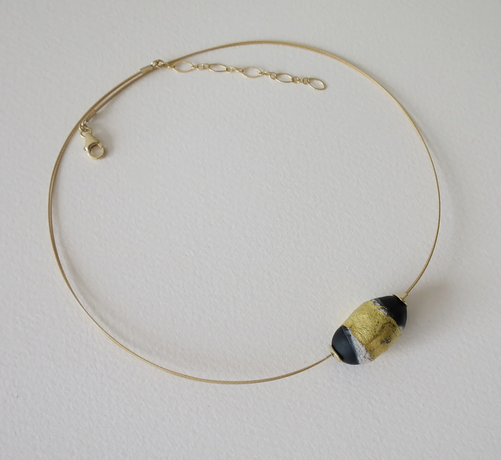 Uniquely created Blown Glass jewellery, handmade in Israel. Blown glass neckpiece PreviousBlown glass necklace, black tones with 24kt gold leaf NextBlown glass necklace Blown glass neckpiece Blown glass neckpiece $125.00 Blown glass neckpiece, black with 24kt gold leaf on double Vermeil cable. Length of this cable necklace is 17 inches / 43.18 cm with adjustable length. Add To Cart Facebook0 Twitter LinkedIn0 Reddit Tumblr Pinterest0