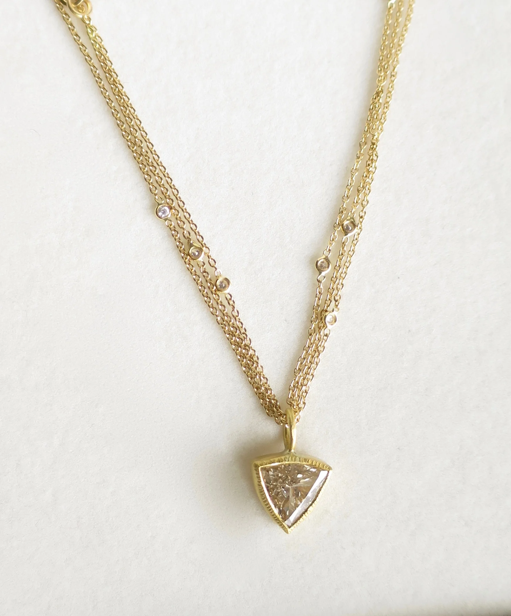 MADE TO ORDER : Trilliard diamond pendant on triple gold chains with diamonds