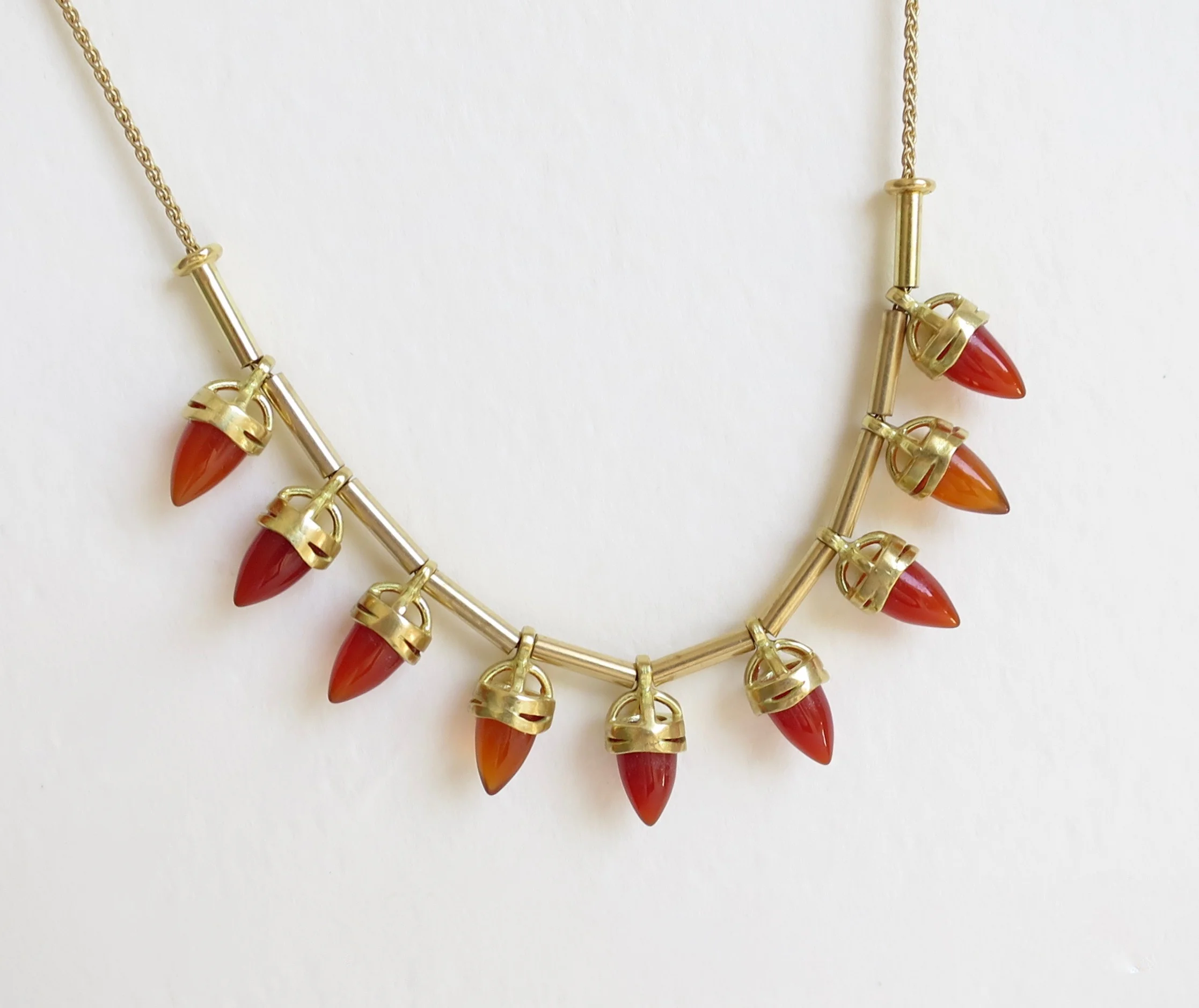 Jewels with silver and gold / unique designs using precious and semi precious stones. 18kt gold Carnelian neckpiece PreviousRough diamond necklace with gold pendant NextRough black and white diamond necklace 18kt gold Carnelian neckpiece 18kt gold Carnelian neckpiece $2,400.00 18kt Gold Carnelian drop necklace. Length of necklace is 18inches /46cm. Add To Cart Facebook0 Twitter LinkedIn0 Reddit Tumblr Pinterest0