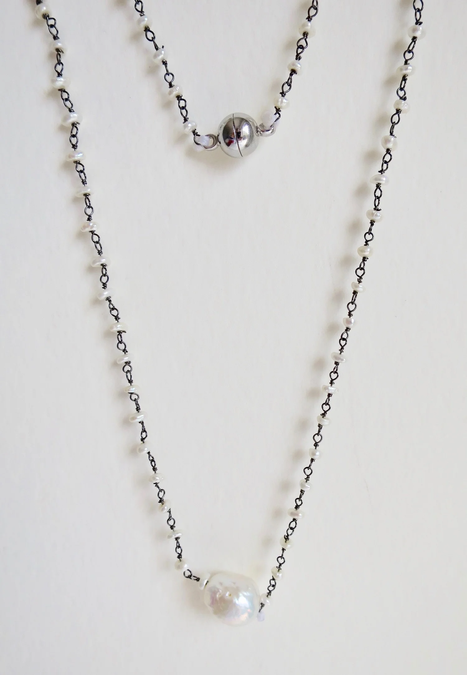 Pearls / unique creations of necklaces, earrings and bracelets / varieties of stones Freshwater pearls with Pearl drop PreviousAmetrine necklace with Pearly trio drop NextLapis and Pearls on Satin links neckpiece Freshwater pearls with Pearl drop Freshwater pearls with Pearl drop $95.00 Freshwater pearls on oxidized silver chain and pearl drop, magnetic silver clasp. Length of neckpiece is 18 inches / 45.72 cm. Add To Cart Facebook0 Twitter LinkedIn0 Reddit Tumblr Pinterest0