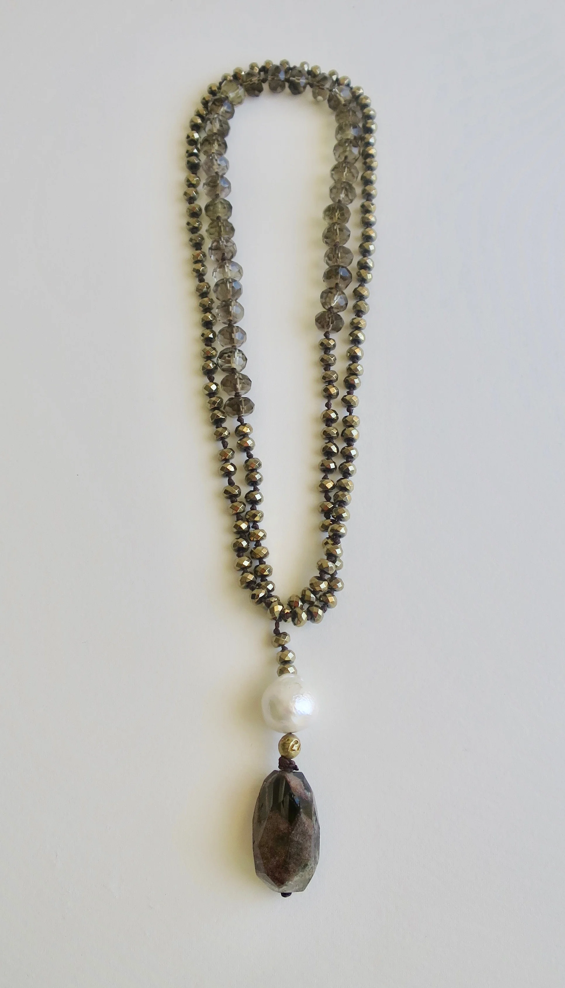 Pearls / unique creations of necklaces, earrings and bracelets / varieties of stones Smokey Quartz and Pyrite necklace PreviousCitrine and Spinel choker on Vermeil with Pearl drop NextLong pearl necklace with black satin and Black Agate Smokey Quartz and Pyrite necklace Smokey Quartz and Pyrite necklace $260.00 Smokey Quartz with Pyrite necklace. Pearl and Agate drop. Length of necklace is 34 inches / 86.36 cm with drop 3 inches / 7.62 cm. Add To Cart Facebook0 Twitter LinkedIn0 Reddit Tumblr Pinterest0