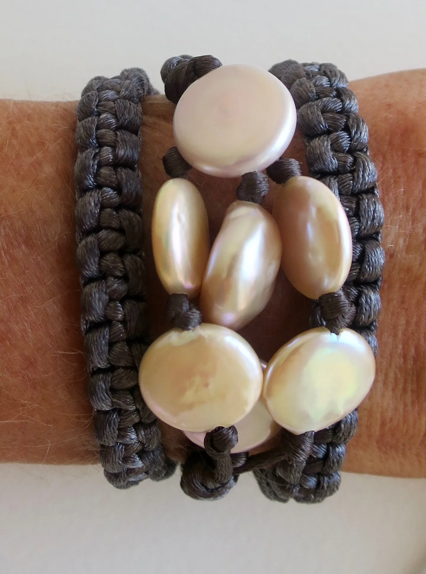 Pearls / unique creations of necklaces, earrings and bracelets / varieties of stones Wrap bracelet with Pearls PreviousLabradorite and Pearl satin wrap bracelet NextBurgundy satin, Pearl and silver bracelet Wrap bracelet with Pearls Wrap bracelet with Pearls $245.00 Satin wrap bracelet with flat pink Pearls. Adjustable lengthHow to don this bracelet on video below Add To Cart Facebook0 Twitter LinkedIn0 Reddit Tumblr Pinterest0