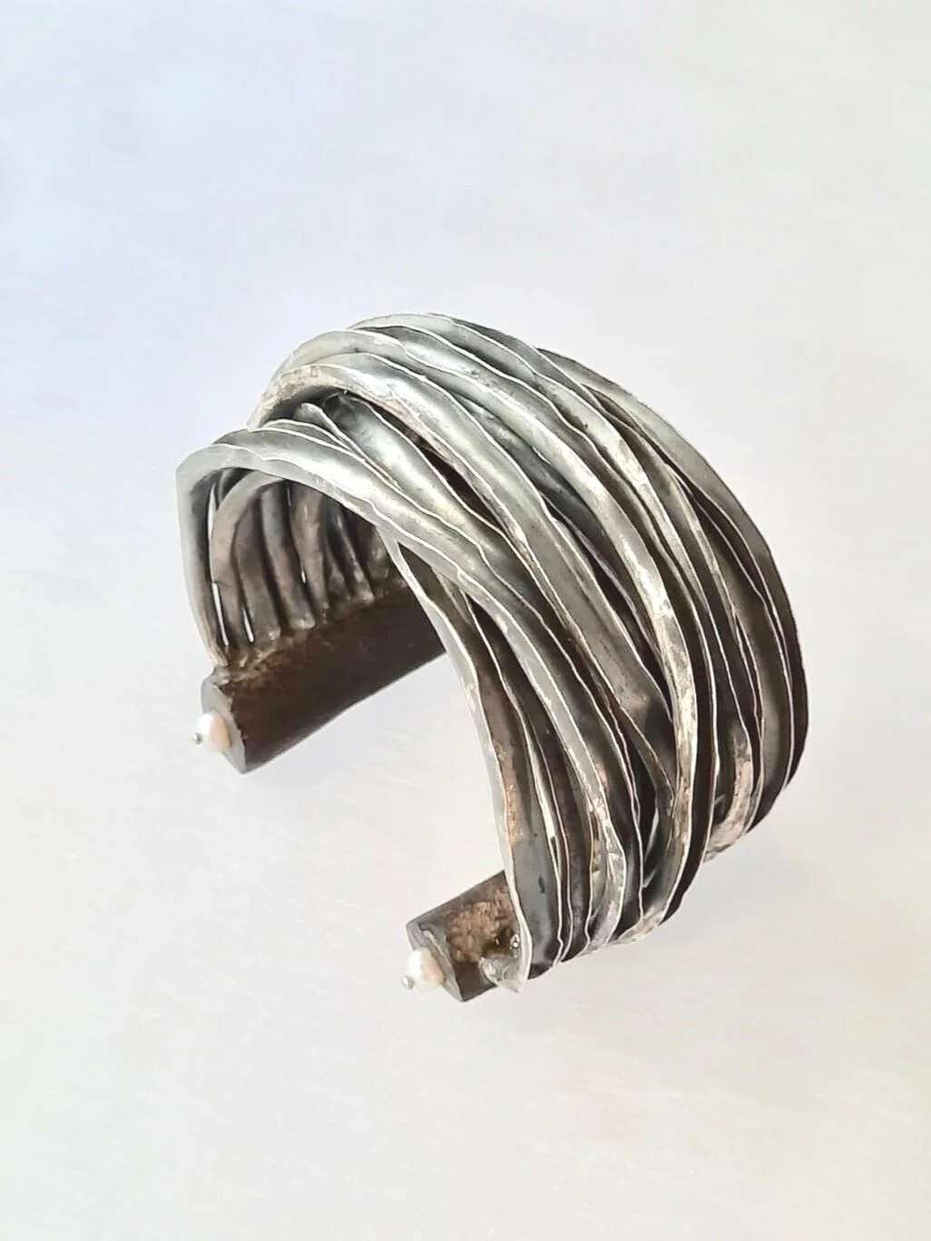 Handcrafted silver and Vermeil jewellery, incorporating pearls and semi precious stones Oxidised pure silver cuff bracelet with Ebony and Pearls PreviousEbony open cuff with pure silver, tourmaline and pearls NextPure silver bracelet with Turquoise and Apetite Oxidised pure silver cuff bracelet with Ebony and Pearls Oxidised pure silver cuff bracelet with Ebony and Pearls $1,500.00 Handmade unique oxidised silver bracelet with Ebony and Pearls Add To Cart Facebook0 Twitter LinkedIn0 Reddit Tumblr Pinterest0